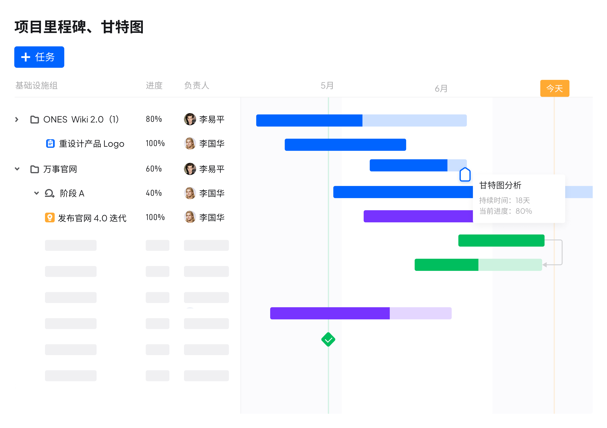 实现从项目到任务的多层级规划, 丰富的可视化图表,实时追踪执行进度。